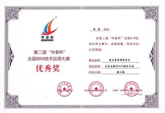 公司荣获第二届“华春杯”全国BIM技术应用大赛优秀奖