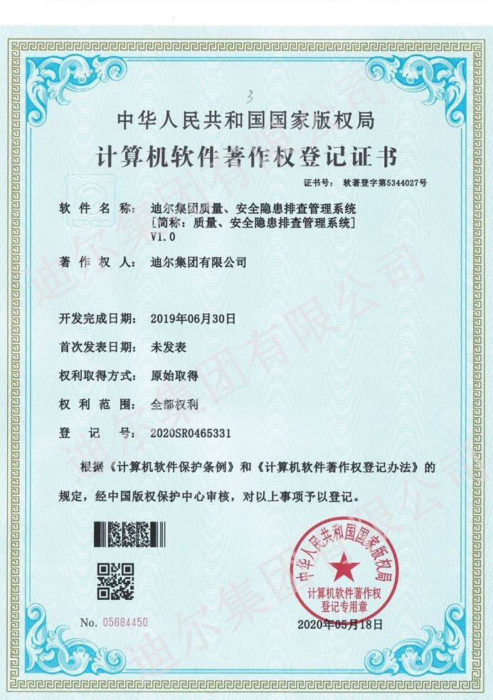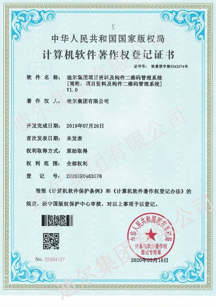 2020年5月23日,公司自主设计开发并实施应用的五个信息化管理系统:综合数据分析平台、劳务实名制管理系统、质量安全隐患排查管理系统、电子商务物资集采平台、项目资料及构件二维码管理系统,均获得国家版权局计算机软件著作权。