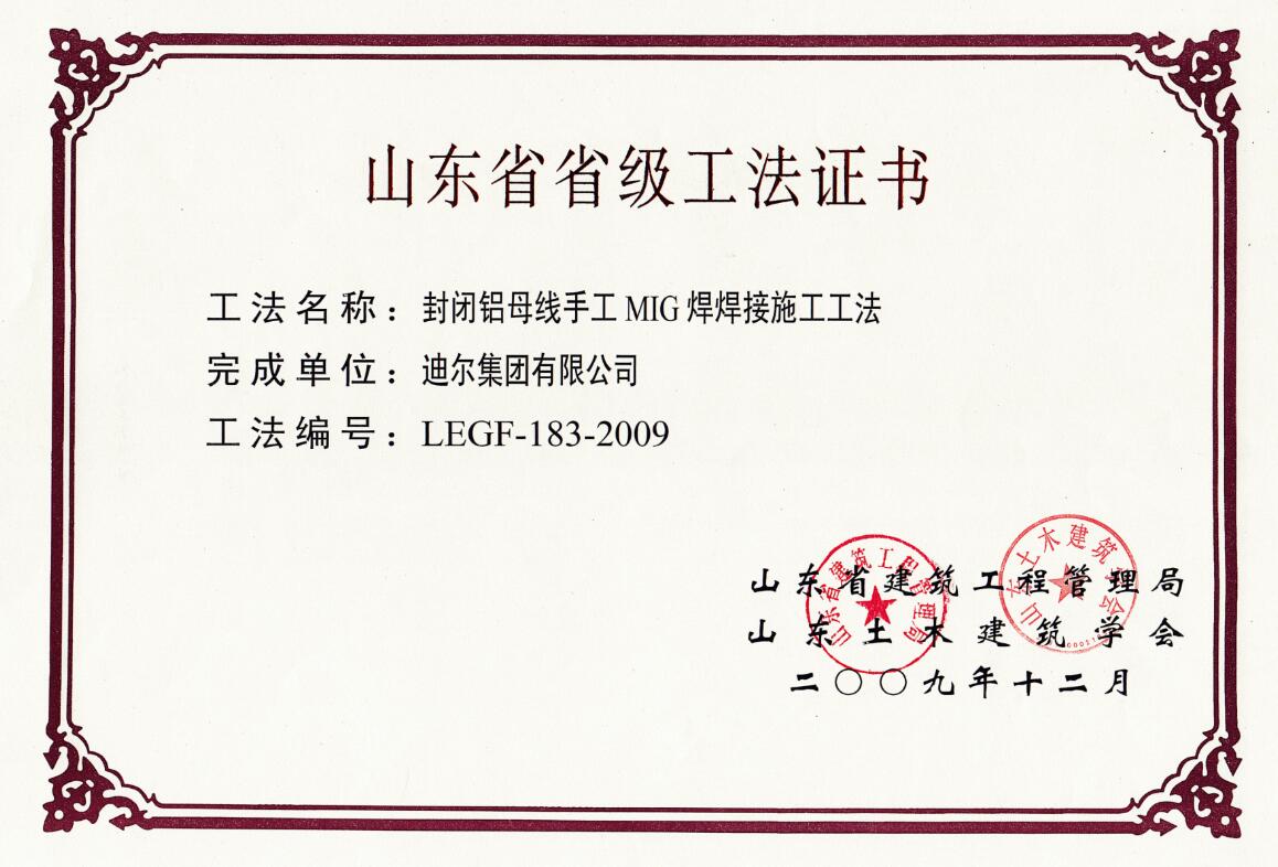 公司荣获山东省省级“封闭母线手工MIG焊焊接施工工法”